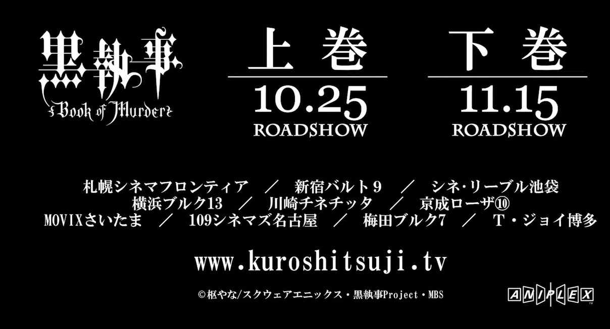 La obra de Yana Toboso, Kuroshitsuji: Book of Murder, contará con una adaptación en formato OVA producida por Aniplex. Este especial constará de dos volúmenes, que se lanzarán en Blu-ray Disc el 28 de enero y el 25 de febrero de 2015, aunque en Japón se podrán ver a finales de este mismo año.