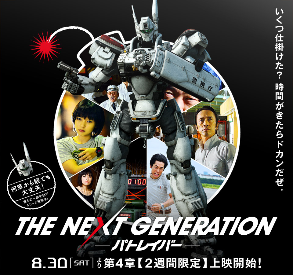 Ha comenzado a circular un nuevo tráiler de la serie de live action The Next Generation -Patlabor-, la cual se estrenará el 18 de octubre y contará con 8 episodios. Cabe destacar que esta adaptación no es un remake del anime original, sino que presenta material completamente nuevo.
